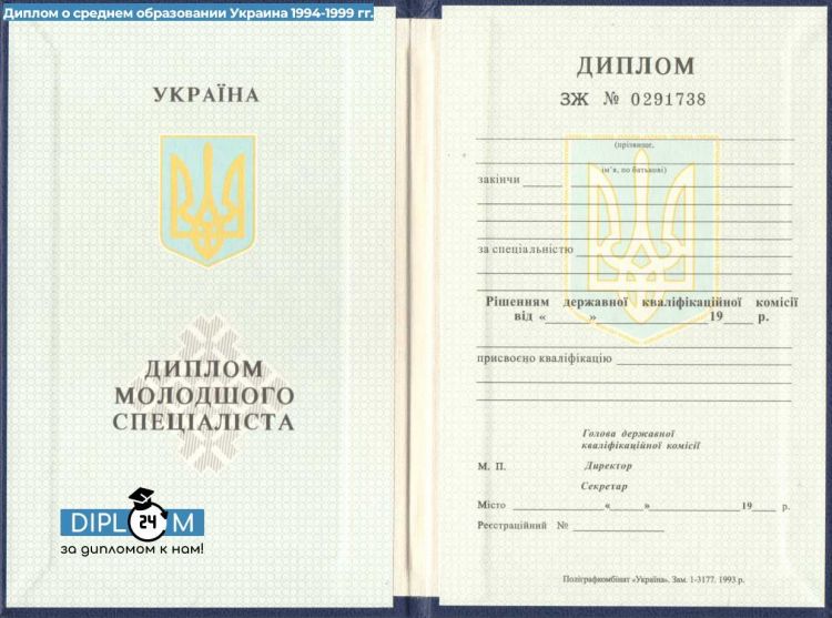 Диплом о среднем образовании Украины 1994-1999 гг.